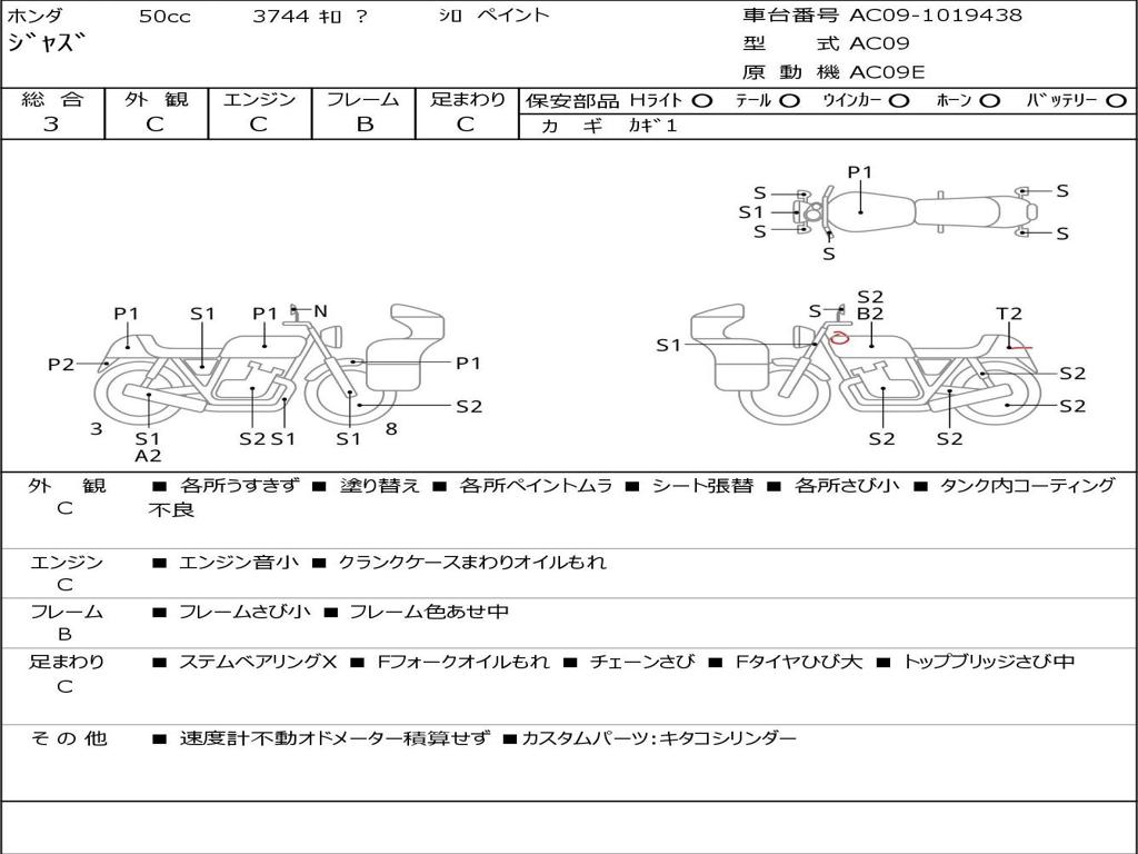 | Номер рамы / VIN | AC09-1019438 |