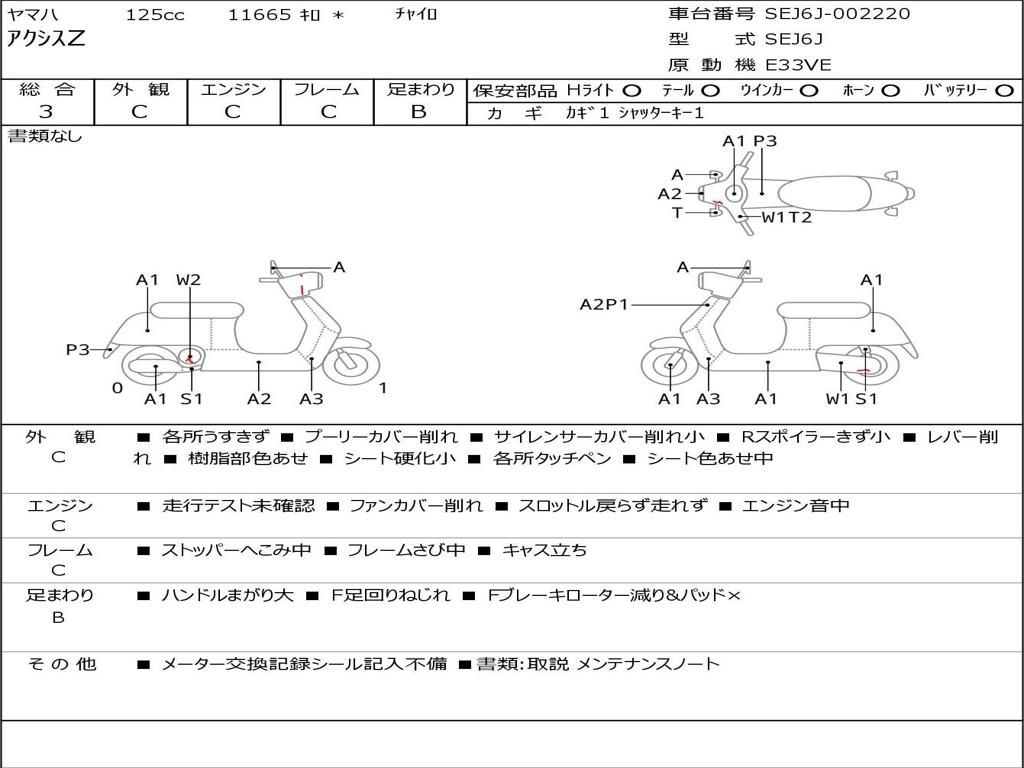| Номер рамы / VIN | SEJ6J-002220 |