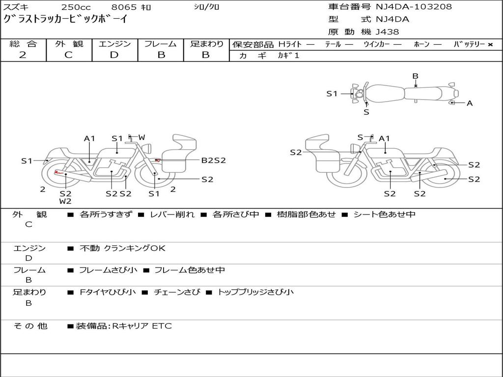 | Номер рамы / VIN | NJ4DA-103208 |