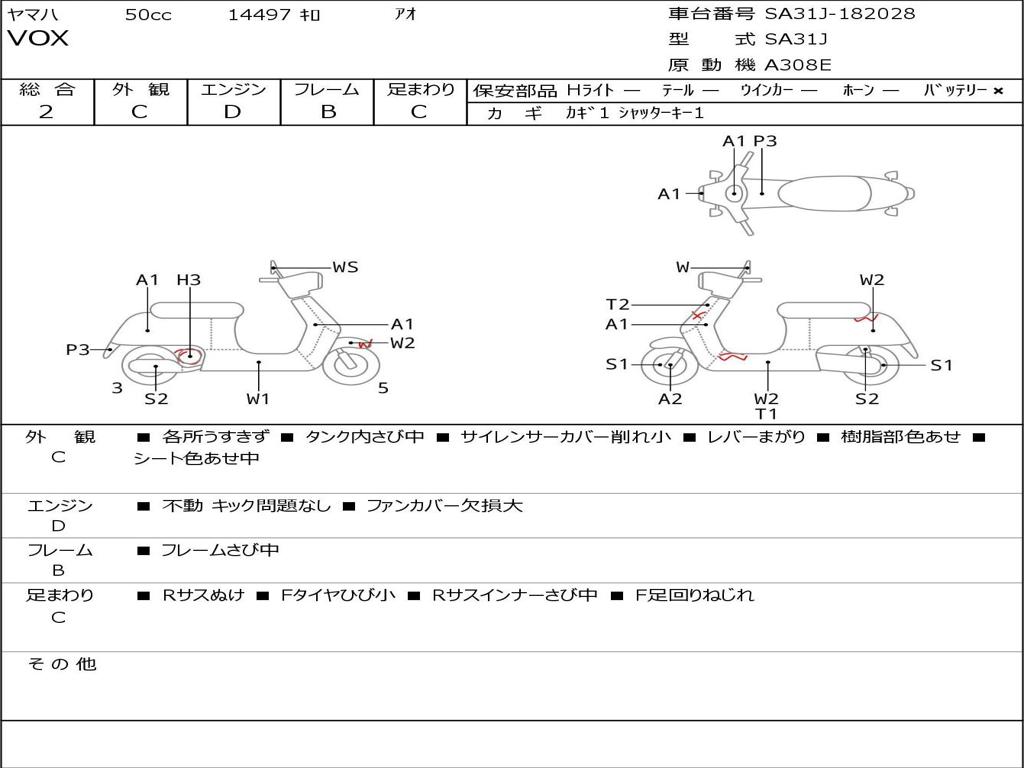 | Номер рамы / VIN | SA31J-182028 |