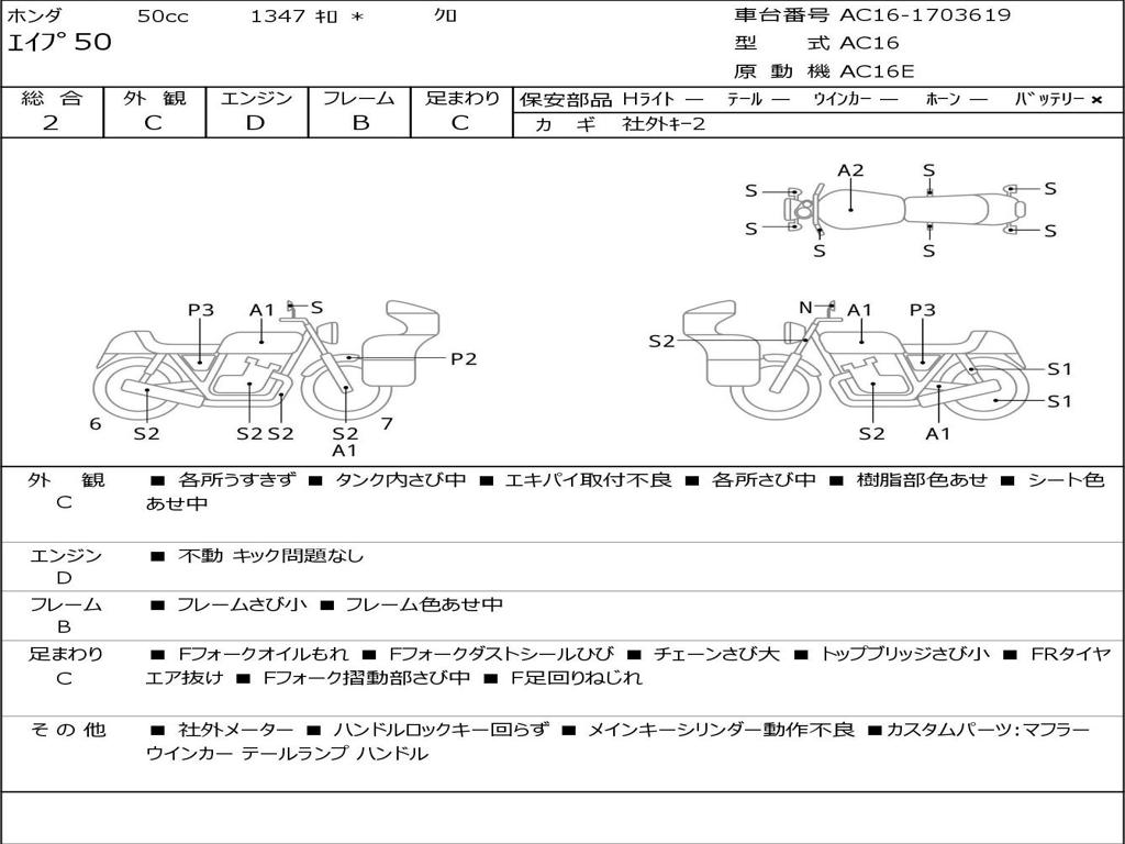 | Номер рамы / VIN | AC16-1703619 |