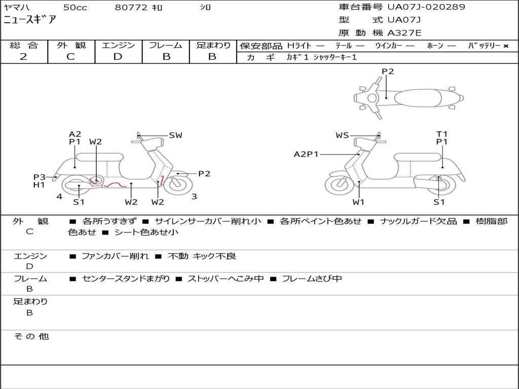 | Номер рамы / VIN | UA07J-020289 |