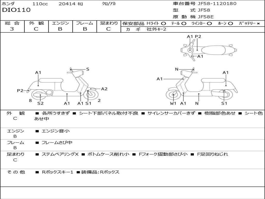 | Номер рамы / VIN | JF58-1120180 |