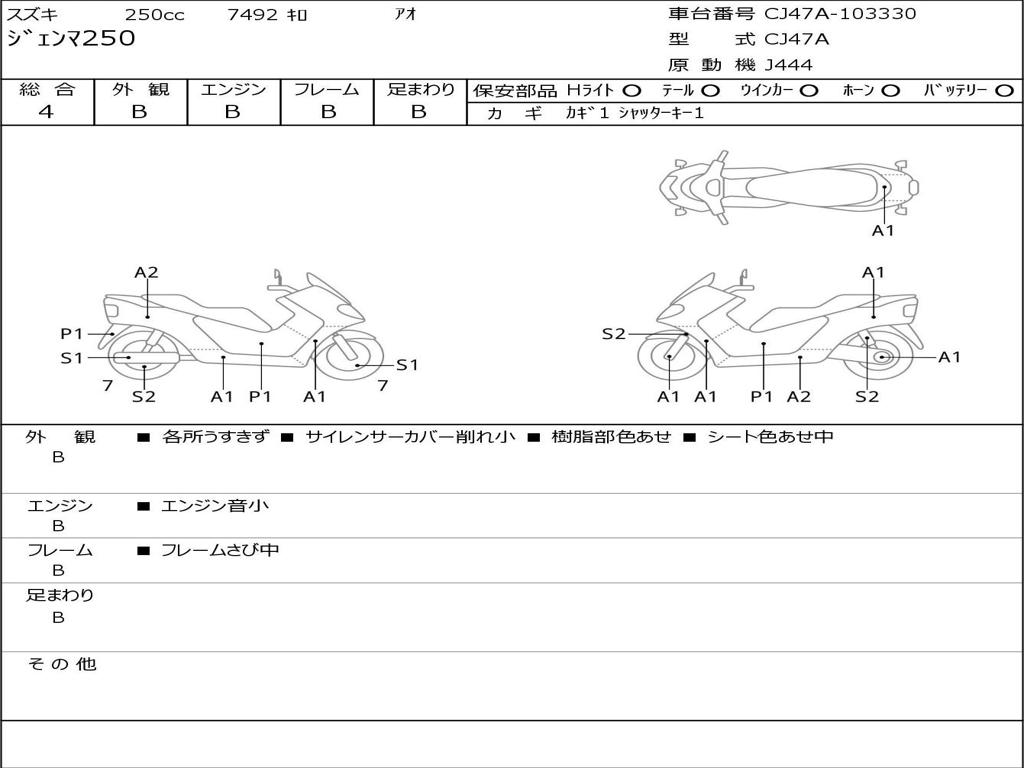 | Номер рамы / VIN | CJ47A-103330 |