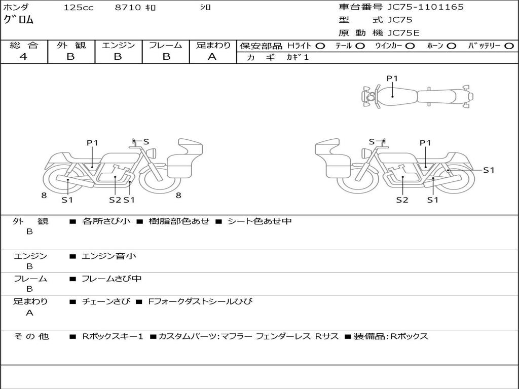 | Номер рамы / VIN | JC75-1101165 |