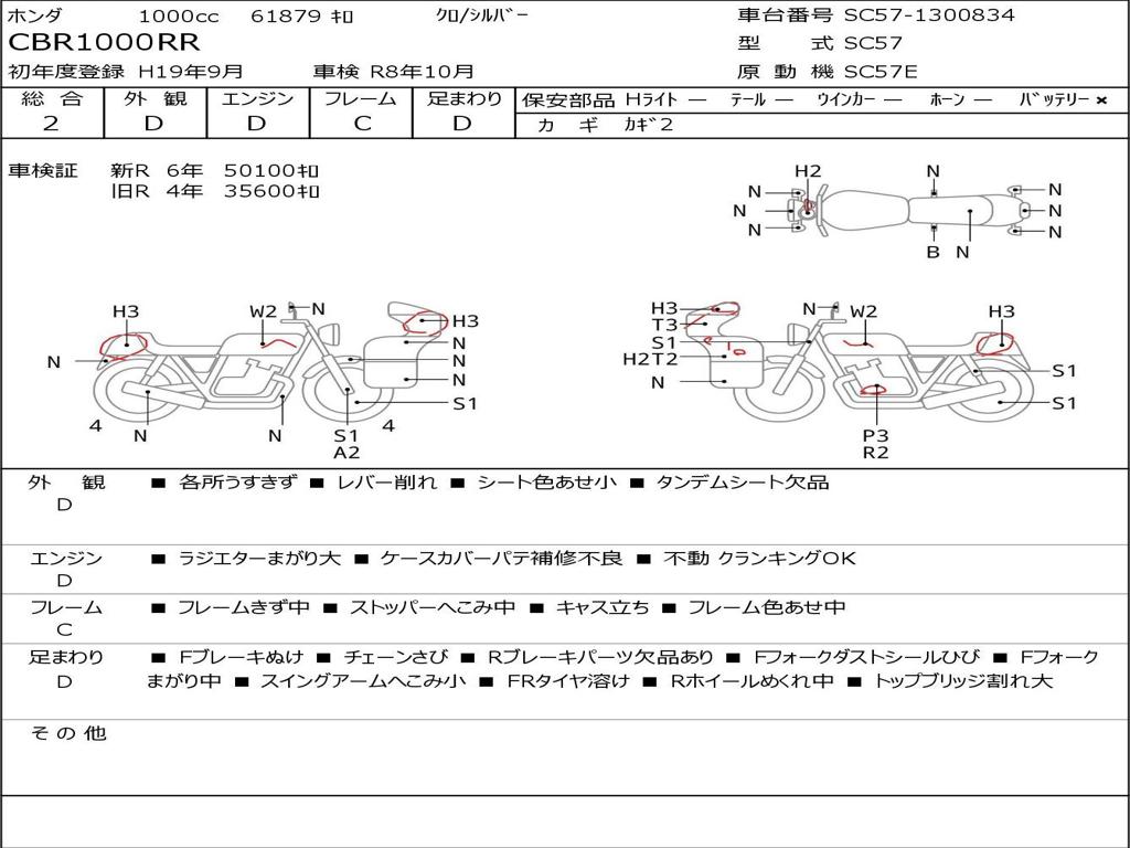 | Номер рамы / VIN | SC57-1300834 |