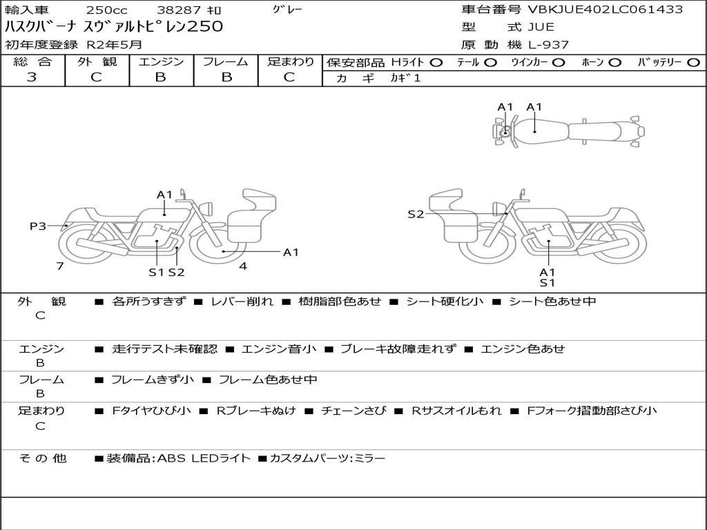 | Номер рамы / VIN | VBKJUE402LC061433 |