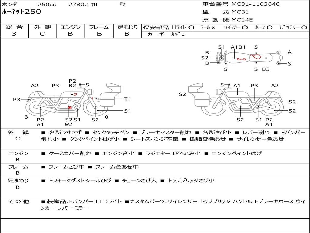 Номер рамы / VIN | MC31-1103646 |