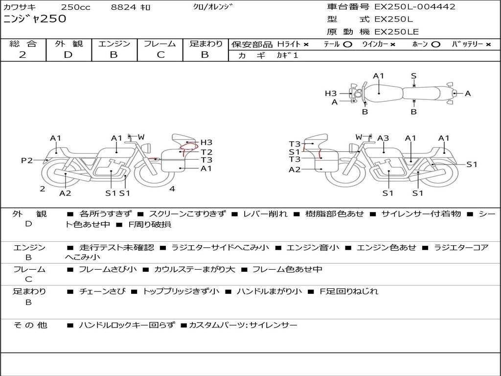 | Номер рамы / VIN | EX250L-004442 |