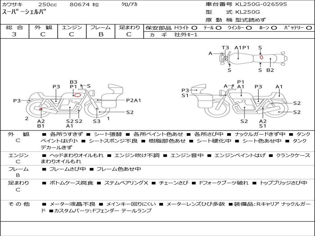 | Номер рамы / VIN | KL250G-026595 |
