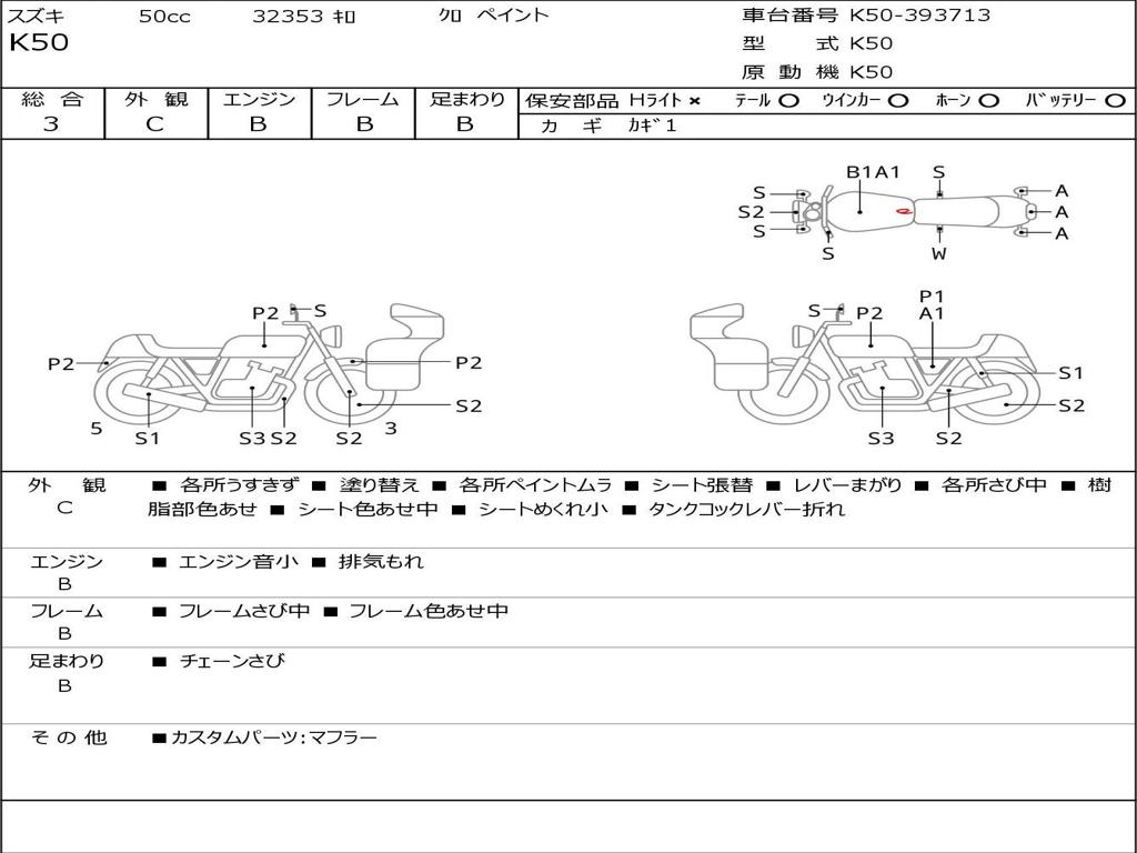 | Номер рамы / VIN | K50-393713 |