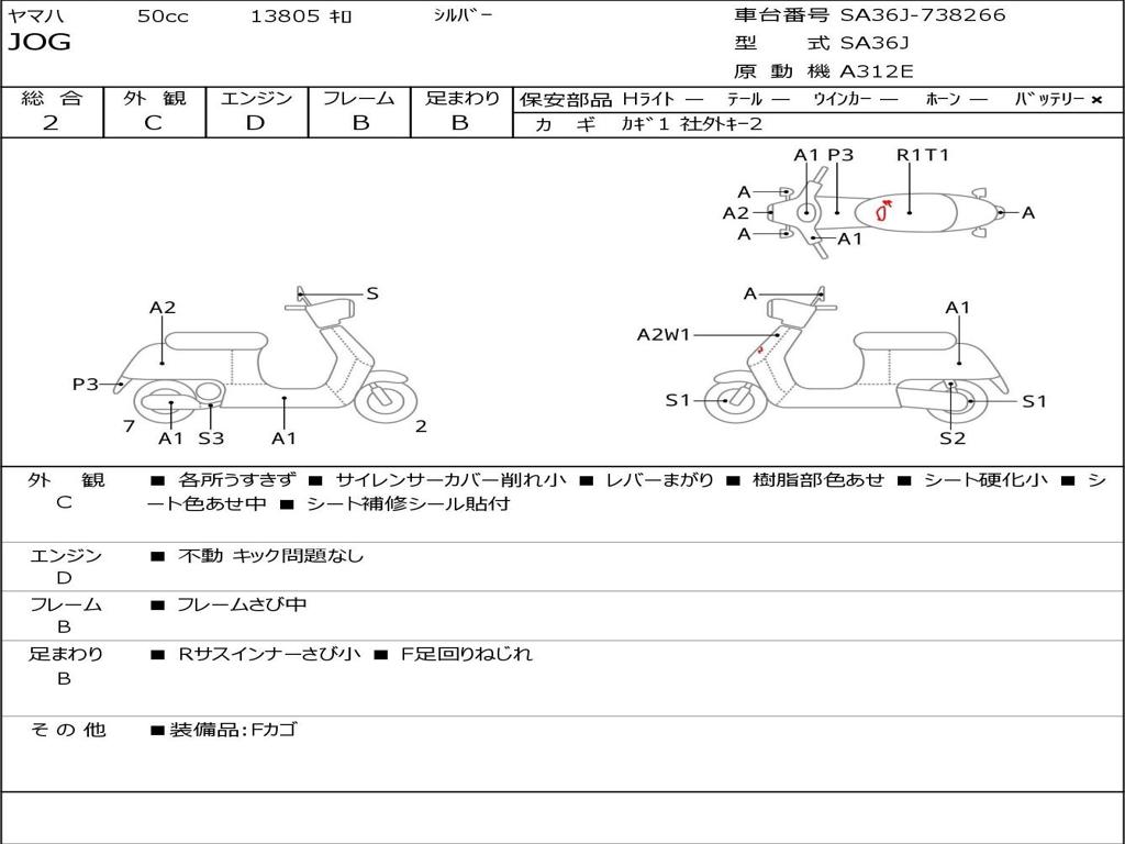 | Номер рамы / VIN | SA36J-738266 |