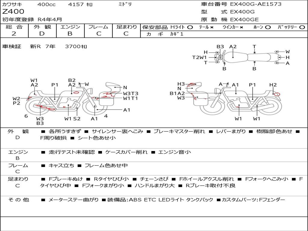 | Номер рамы / VIN | EX400G-AE1573 |