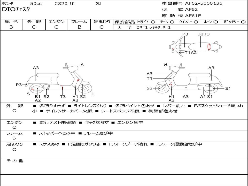 | Номер рамы / VIN | AF62-5006136 |