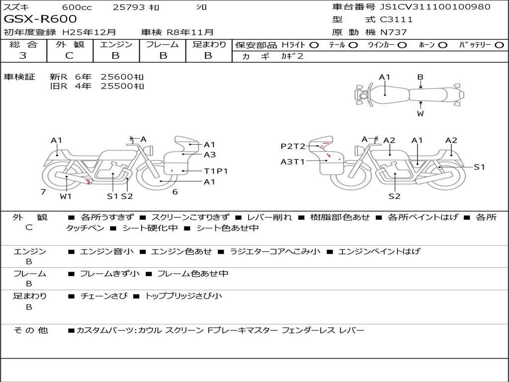 | Номер рамы / VIN | JS1CV311100100980 |