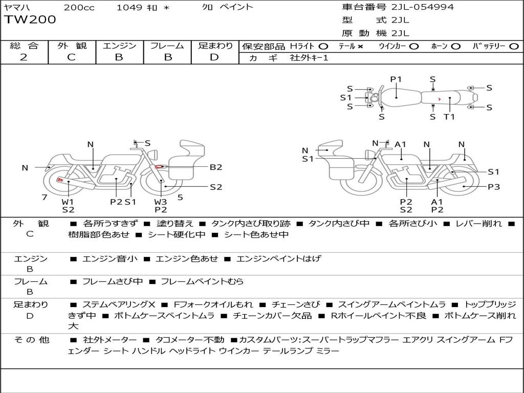 | Номер рамы / VIN | 2JL-054994 |