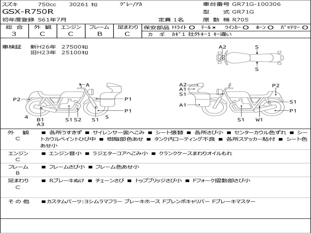 | Номер рамы / VIN | GR71G-100306 |
