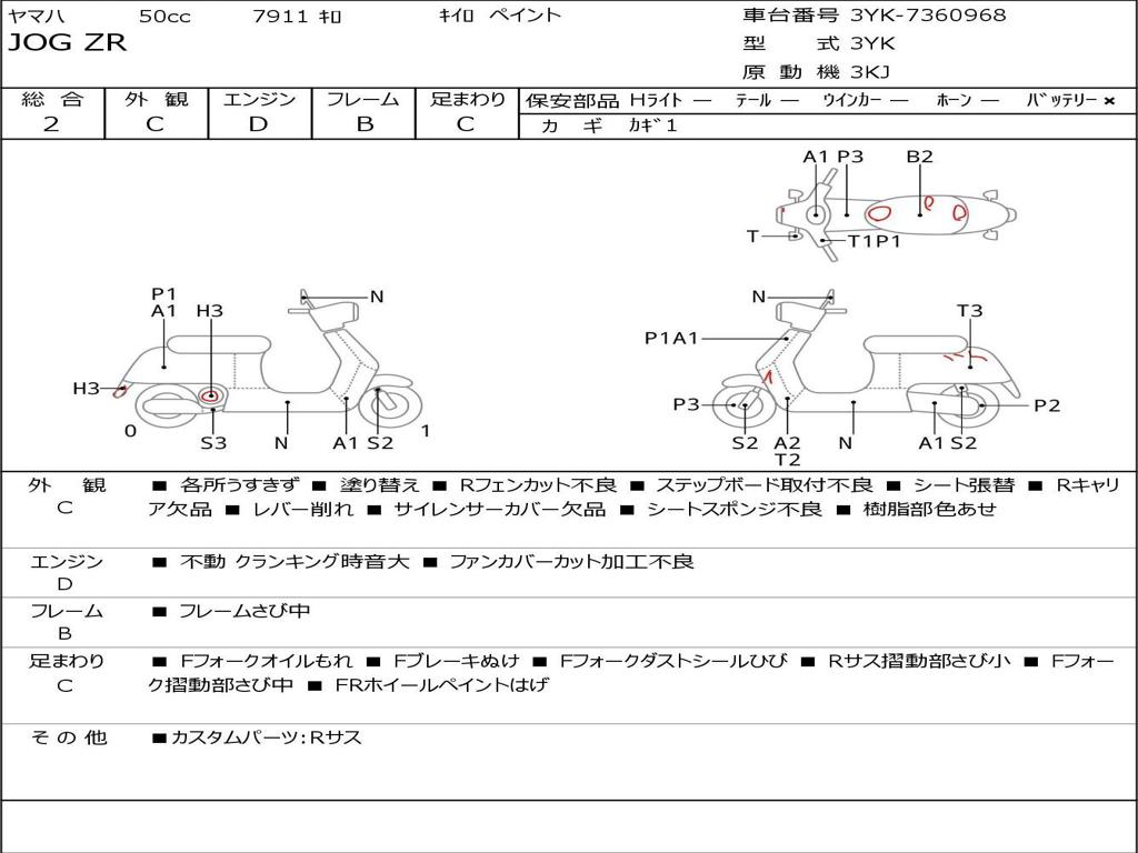 | Номер рамы / VIN | 3YK-7360968 |