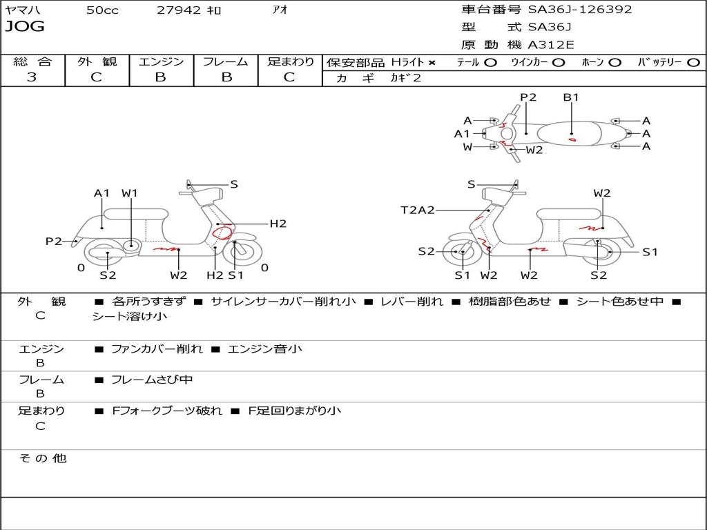 | Номер рамы / VIN | SA36J-126392 |