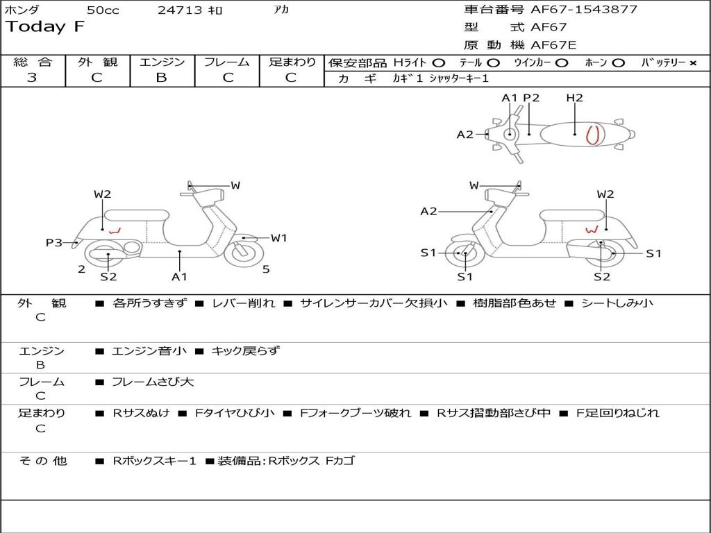 | Номер рамы / VIN | AF67-1543877 |