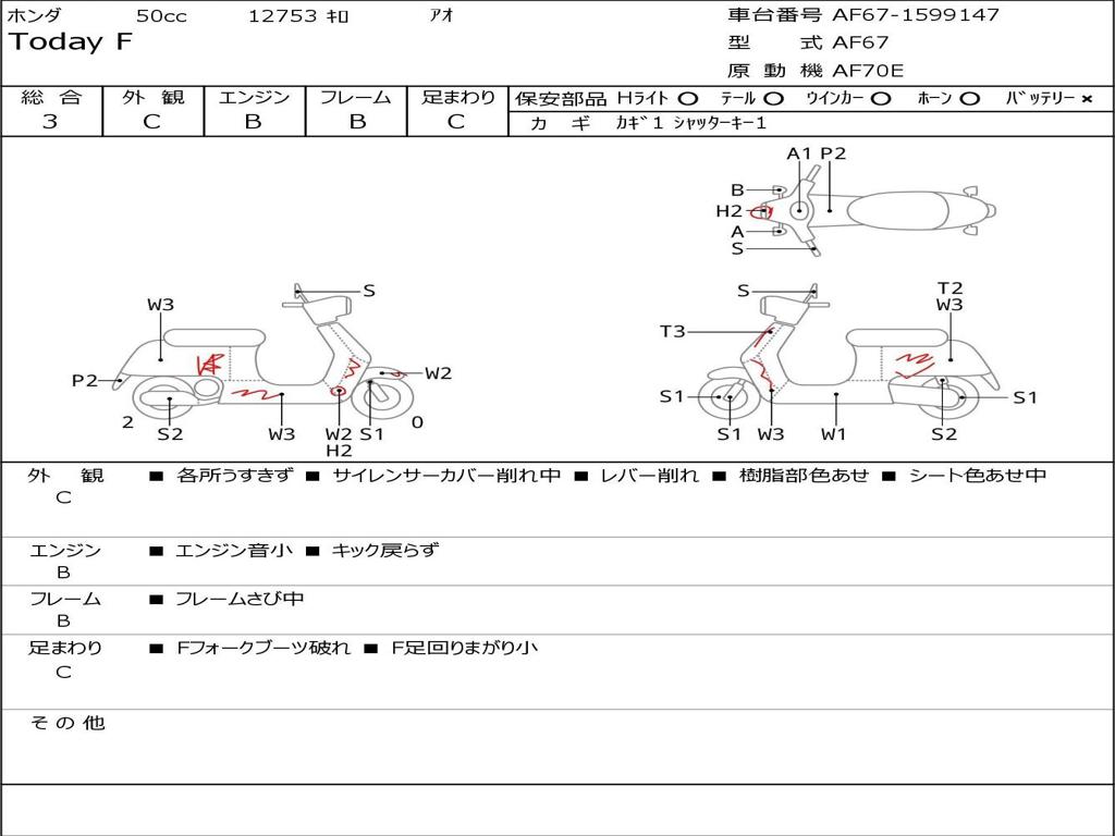 | Номер рамы / VIN | AF67-1599147 |