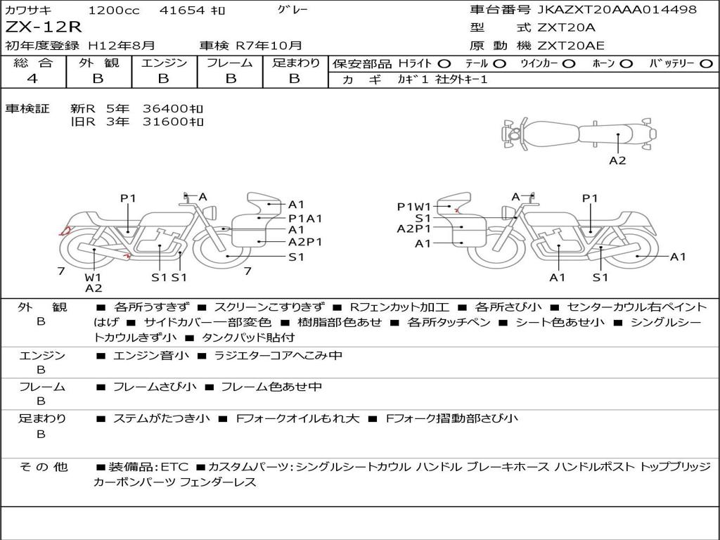 | Номер рамы / VIN | JKAZXT20AAA014498 |