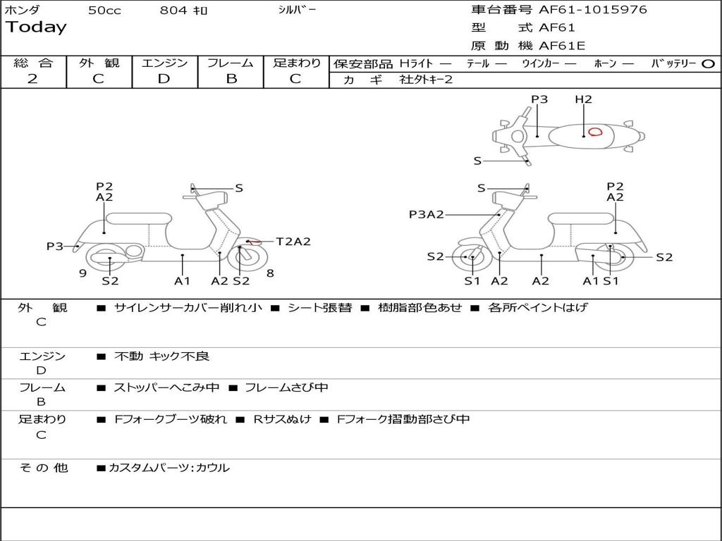 | Номер рамы / VIN | AF61-1015976 |