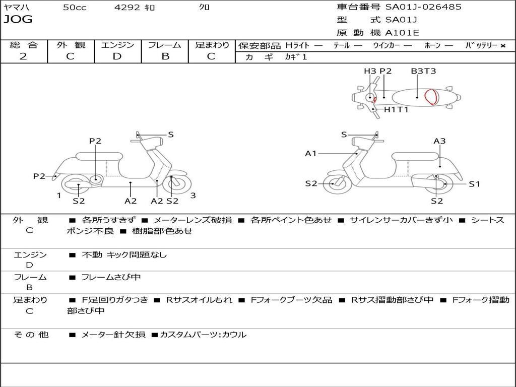 | Номер рамы / VIN | SA01J-026485 |
