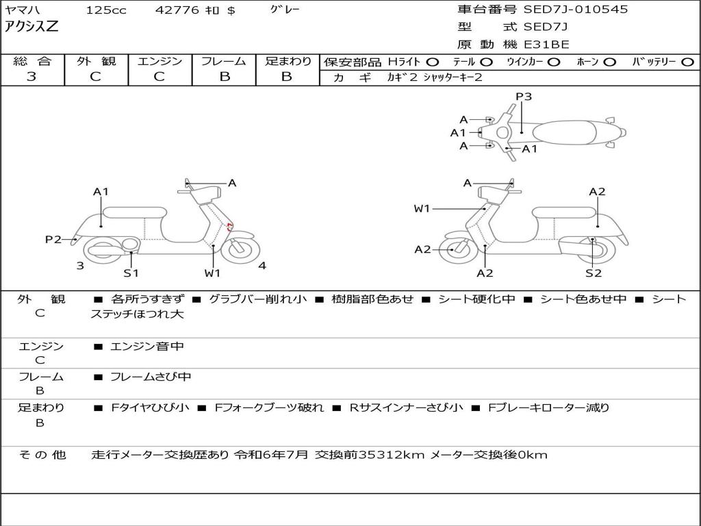 | Номер рамы / VIN | SED7J-010545 |