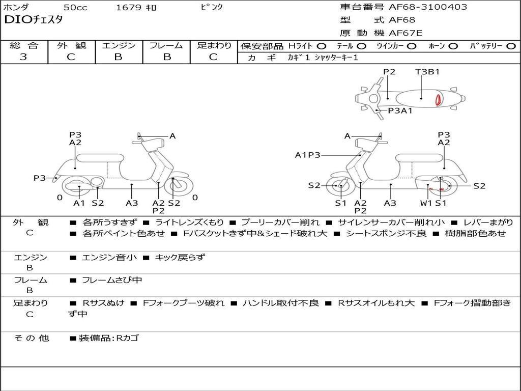 | Номер рамы / VIN | AF68-3100403 |
