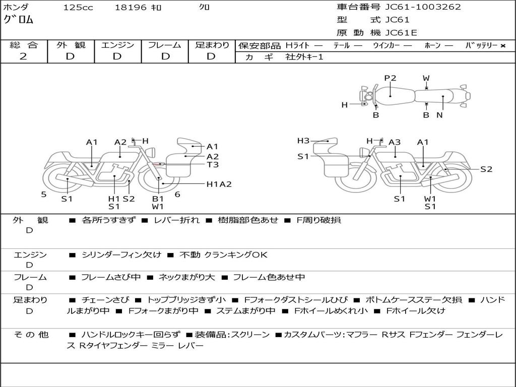 Номер рамы / VIN | JC61-1003262 |