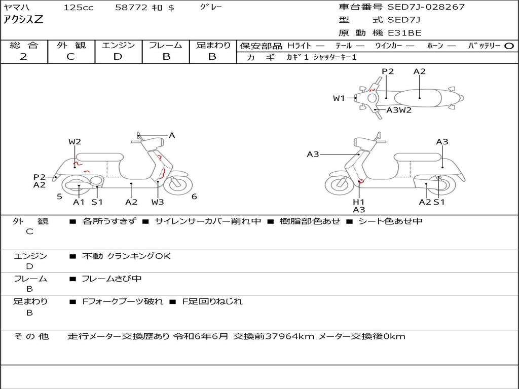 | Номер рамы / VIN | SED7J-028267 |