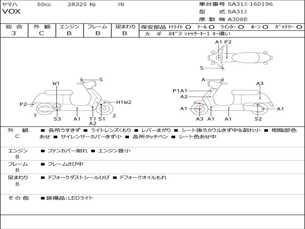 | Номер рамы / VIN | SA31J-160196 |