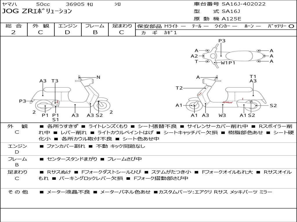 | Номер рамы / VIN | SA16J-402022 |