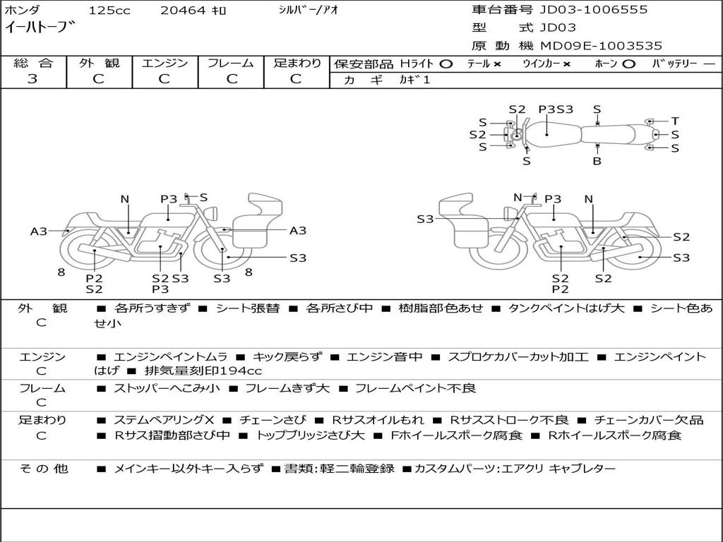 | Номер рамы / VIN | JD03-1006555 |