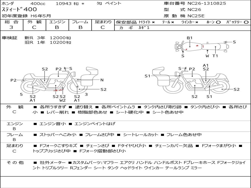 | Номер рамы / VIN | NC26-1310825 |