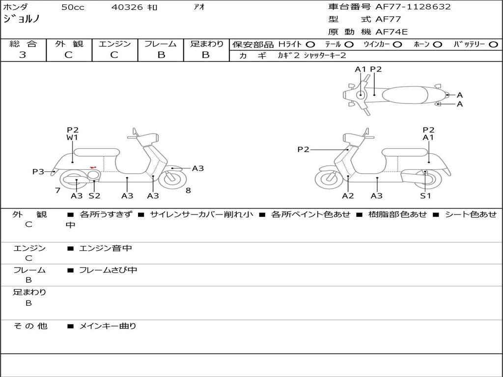 | Номер рамы / VIN | AF77-1128632 |