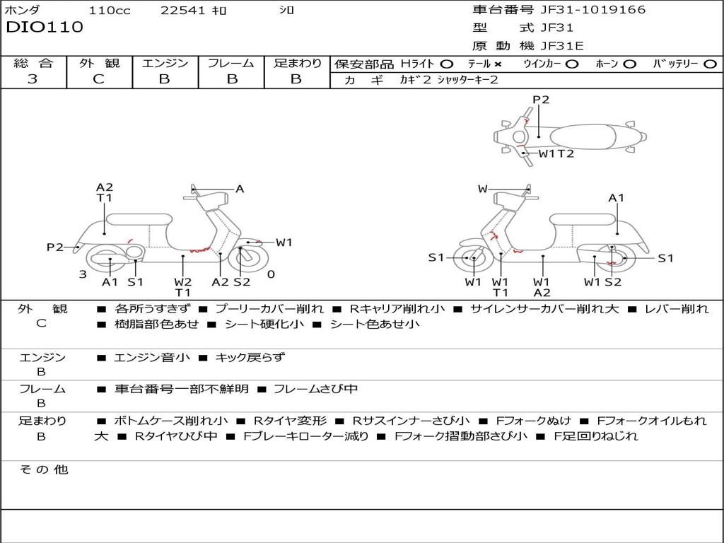 | Номер рамы / VIN | JF31-1019166 |