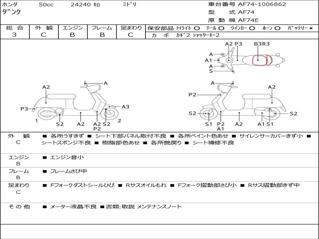 | Номер рамы / VIN | AF74-1006862 |