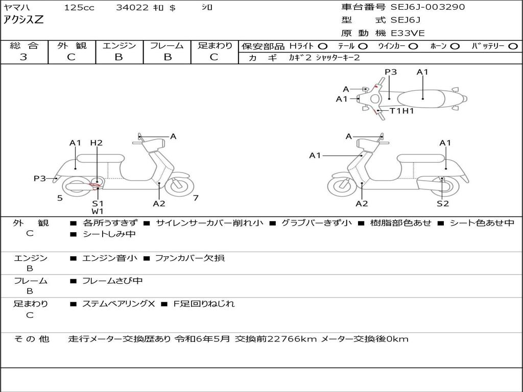| Номер рамы / VIN | SEJ6J-003290 |