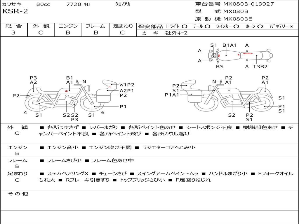 | Номер рамы / VIN | MX080B-019927 |