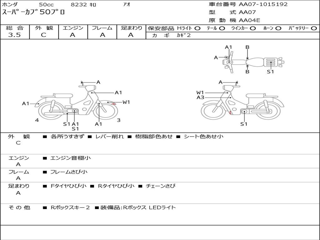 | Номер рамы / VIN | AA07-1015192 |
