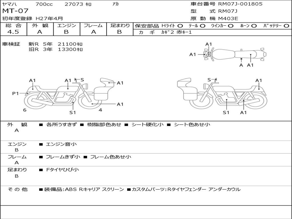 | Номер рамы / VIN | RM07J-001805 |