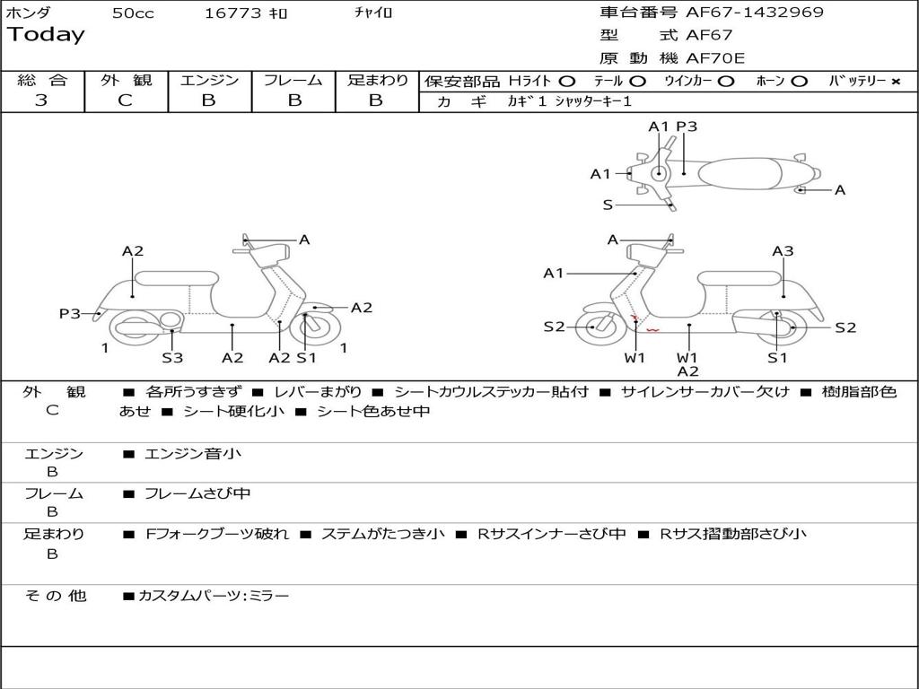 | Номер рамы / VIN | AF67-1432969 |