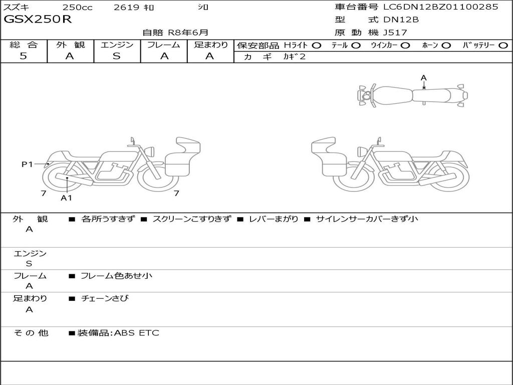 | Отметка об участии мотоцикла в авариях | Мотоцикл не участвовал в ДТП |
