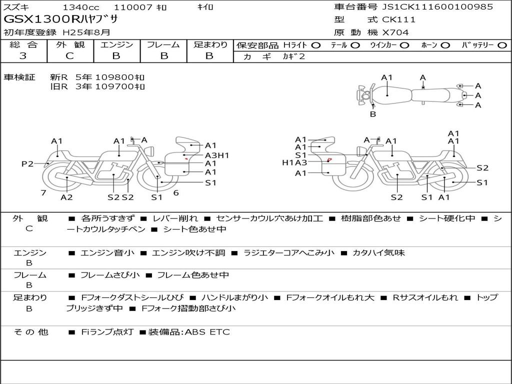 | Номер рамы / VIN | JS1CK111600100985 |