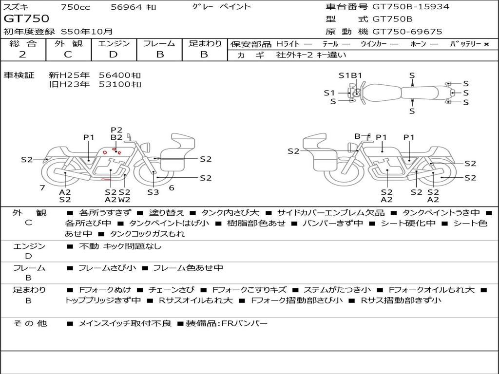 | Номер рамы / VIN | GT750B-15934 |