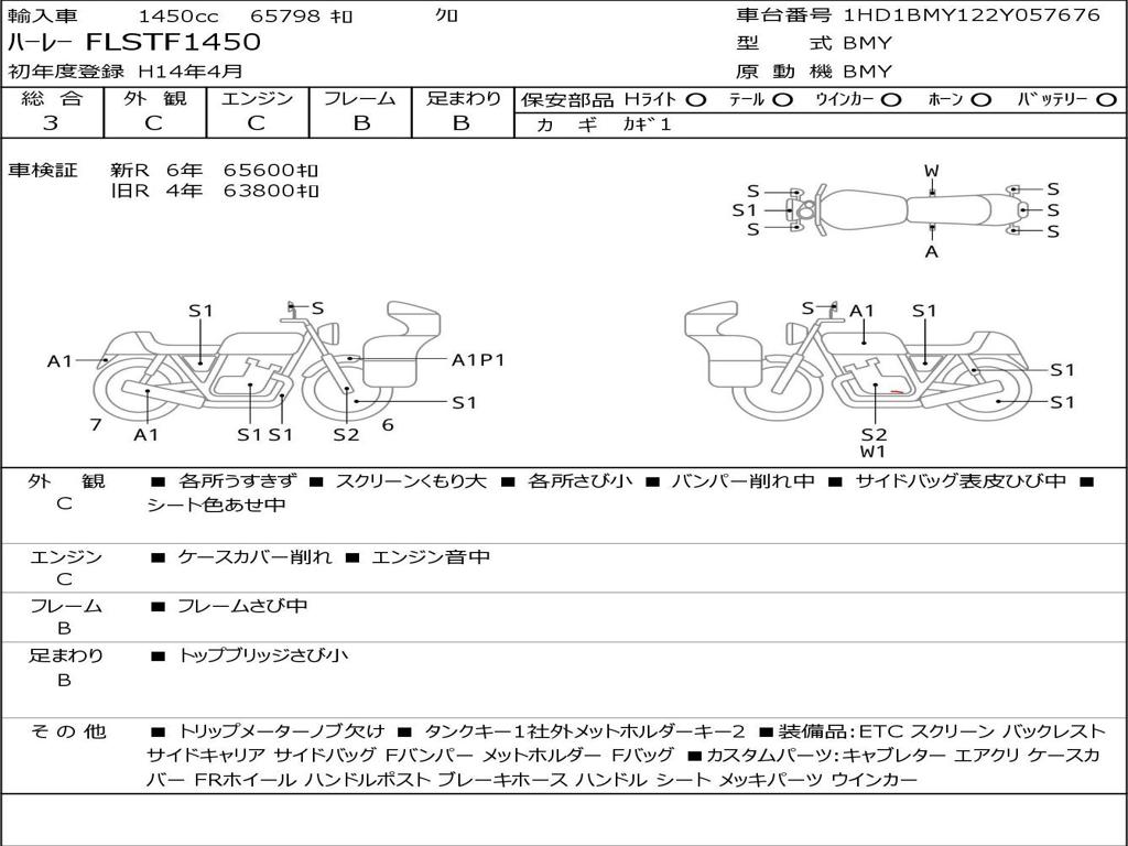 | Номер рамы / VIN | 1HD1BMY122Y057676 |