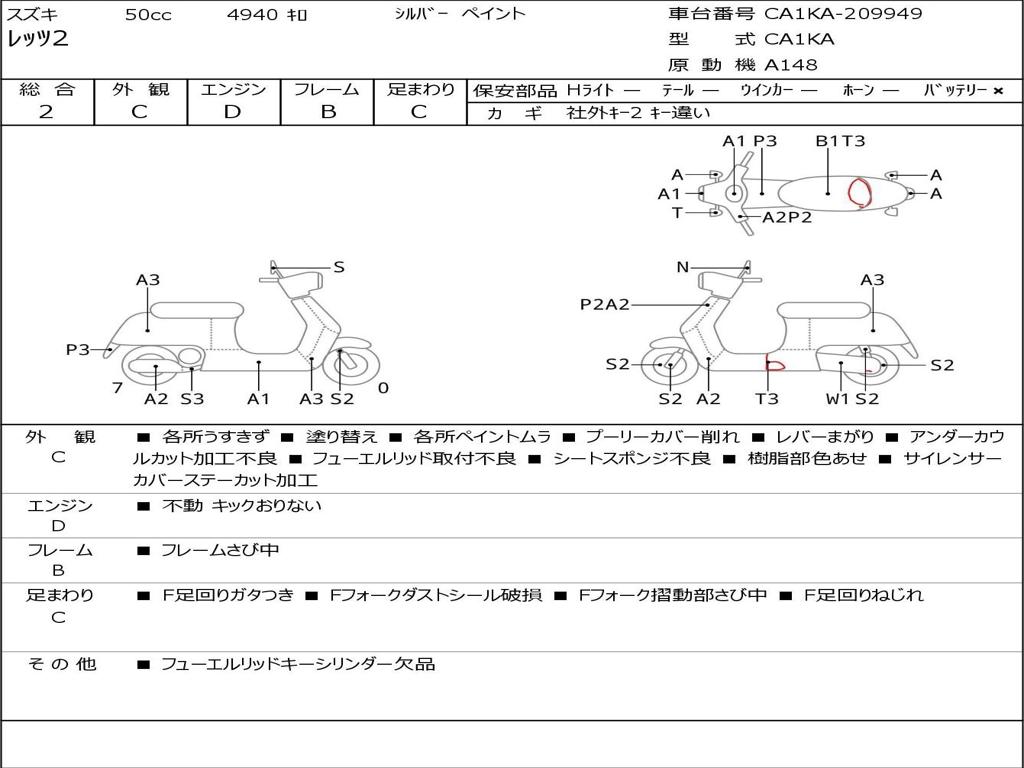 | Номер рамы / VIN | CA1KA-209949 |