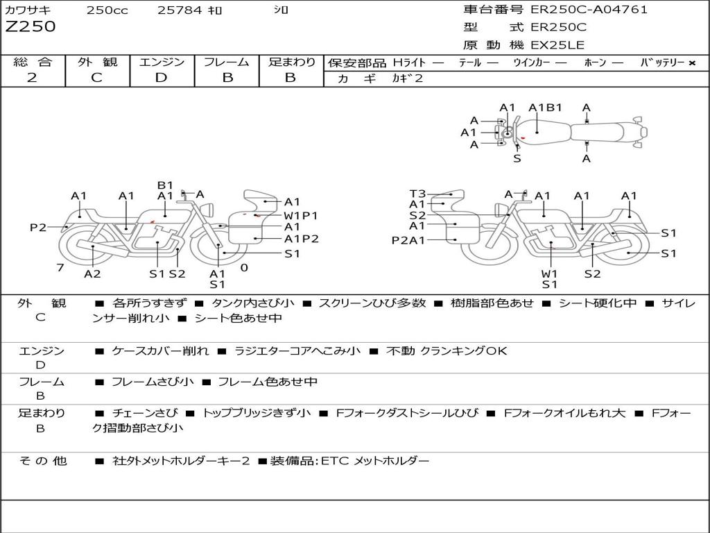 | Номер рамы / VIN | ER250C-A04761 |